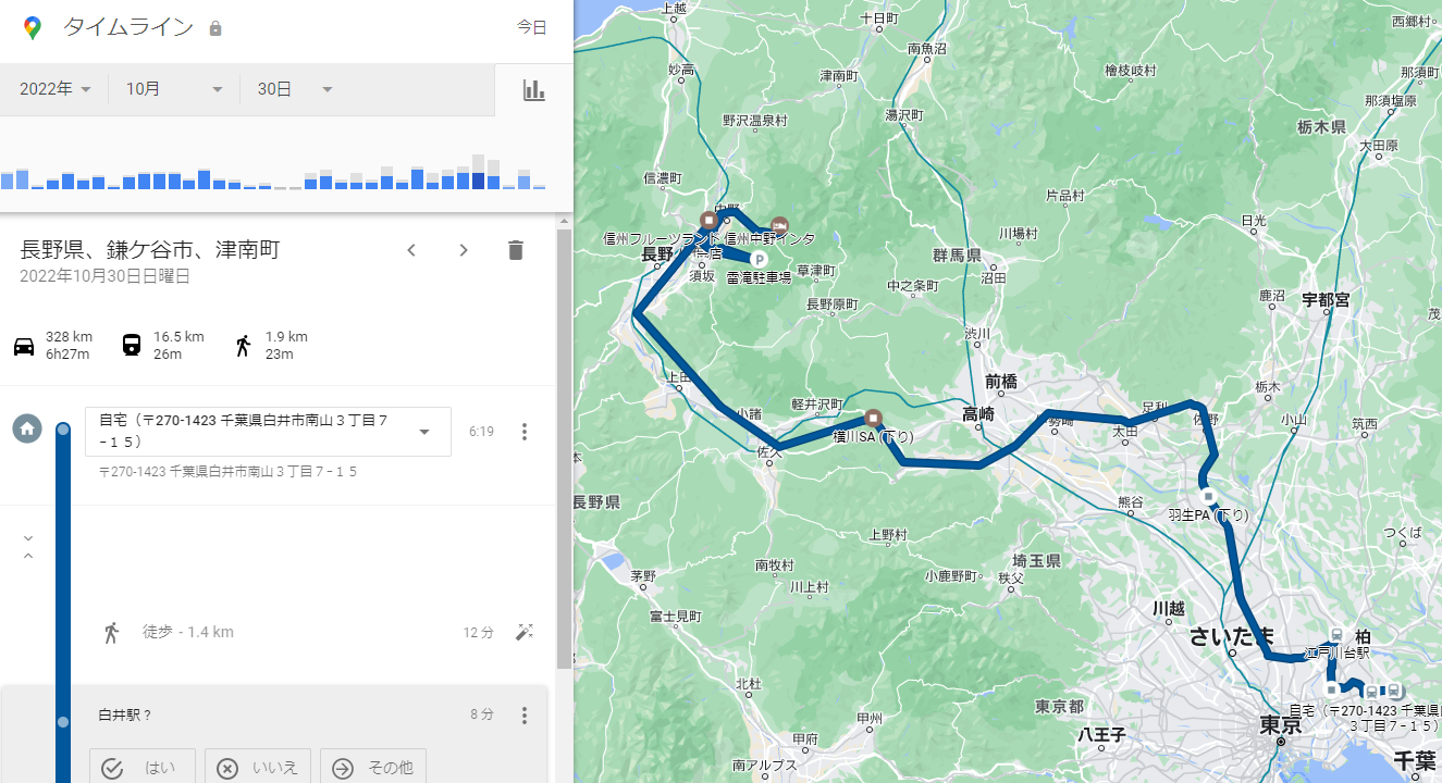 2022−10−30 タイムライン 自宅 → 志賀パークホテル![]() |