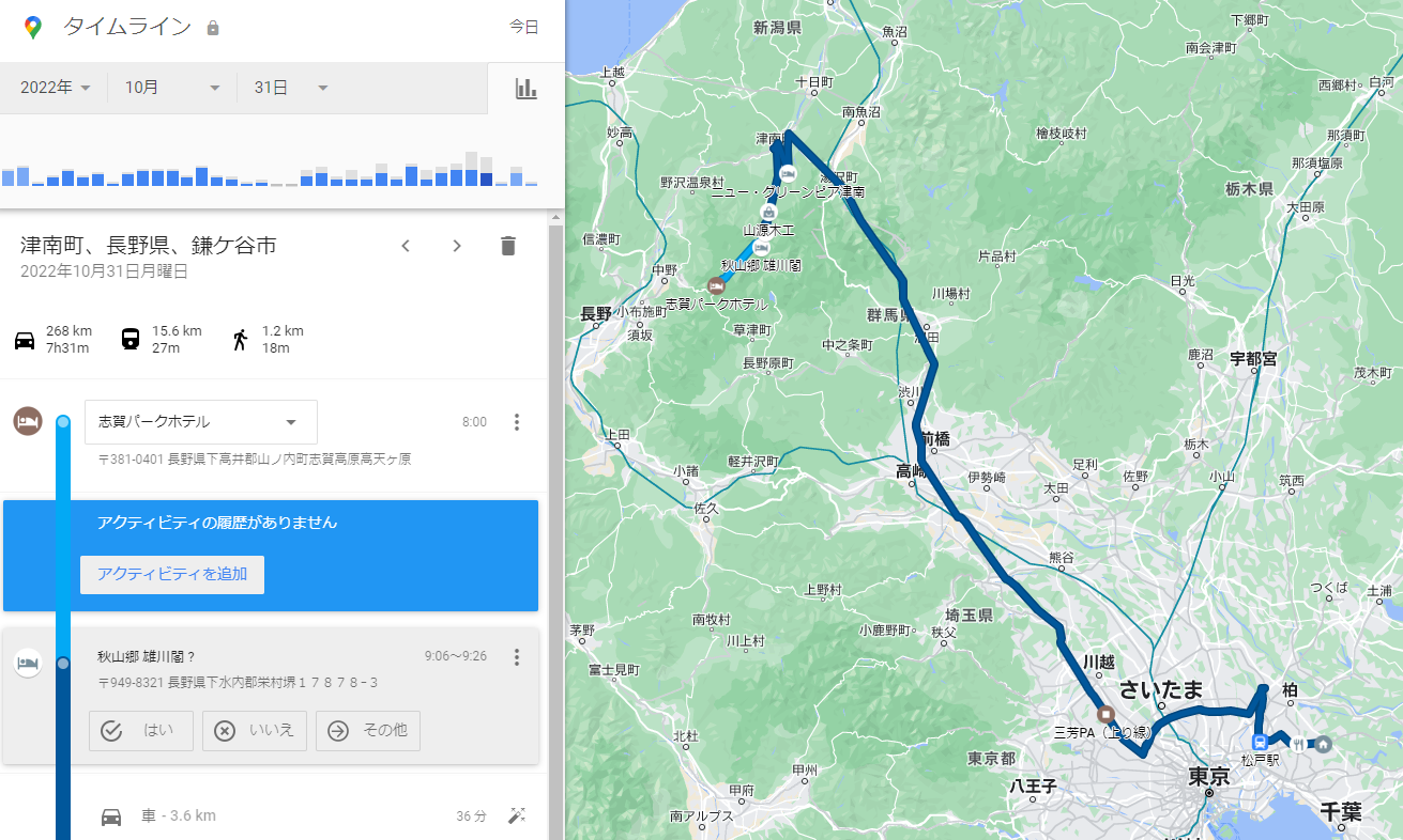 2022−10−31 タイムライン 志賀パークホテル → 自宅![]() |